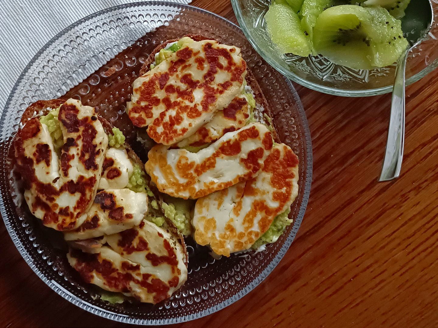 Halloumihamppareiden halloumi leivitetään ja paistetaan pannulla. Näin halloumiin saadaan mukavan rapea pinta! Hampurilaiskansien väliin laitetaan lisäksi tsatsikia, majoneesia, sweet chili -kastiketta, sipulia, tomaattia ja rucolaa. Käytän näihin burgeireihin...